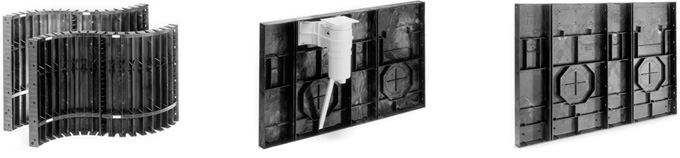 A superfície final dos módulos é absolutamente lisa, sendo a estrutura reforçada por veios horizontais e verticais presentes em toda a estrutura, os quais fornecem um aumento decisivo na rigidez estrutural.